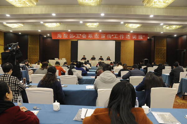 为进一步加强工会宣传工作,扩大工会影响力,提高工会干部、职工的宣传工作水平,在各类媒体上唱响主旋律、坚守主阵地、凝聚正能量、发出好声音,3月14日,泰州市海陵区总工会在泰州宾馆举办工会系统宣传工作培训班,对基层工会从事新闻宣传和工会信息工作的同志进行培训,来自各镇街、园区、系统工会副主席(副主任)、工会干事,部分机关事业单位、村(社区)、重点成长型工业企业工会工作者等100多名同志汇集到一起,充电、加油……