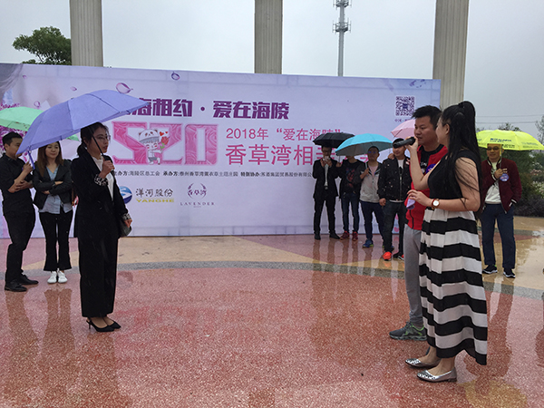 沾衣欲湿杏花雨,吹面不寒杨柳风。活动当天,蒙蒙细雨阻挡不了单身职工追求爱情的脚步,现场设置了“自我介绍”、“心有灵犀”、“自主拉票”、“才艺展示”、“自由配对”、“携手共游”等环节,通过层层递进的环节设置,逐步带动现场的气氛,缓解陌生男女间的尴尬。在游戏过程中,有两位勇敢的男嘉宾大方地向同一位女嘉宾表白,也有活泼的女嘉宾上台充分展示自己,表达自己的择偶观。男女嘉宾在现场热闹活泼的气氛中进一步深入接触、相互了解,让互相心仪的双方相知相恋,用一季花开的时间,让薰衣草花海见证美好爱情的诞生。
