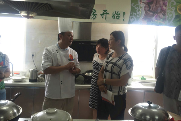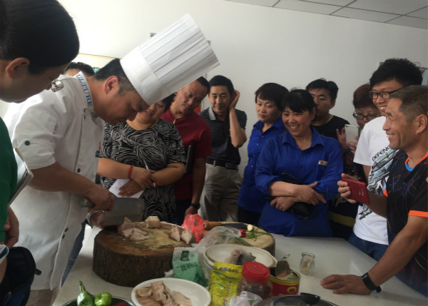 “王老师,我们夫妻俩都是上班族,平时上班时间紧凑,有没有能十来分钟左右完成的菜啊?”“单位职工反映我们烧的水煮肉太老,口感不好,这该怎么解决?”培训班上,学员们学习热情高涨,一边认真在本子上记下王老师传授的烹饪技巧,一边向老师讨教。当王老师展示别具一格的“切葱丝”手法时,全场学员都无法再“淡定”下来,纷纷“点赞”,“这样的切法还真是第一次见呢,回家后我们也要试试。”