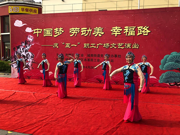 4月26日下午,由海陵区总工会主办,城南街道工会、文化站承办的庆“五一”职工文化广场活动在世纪联华广场举行。来自城南街道辖区基层企业工会、社区工会选送的十个精彩节目,赢得了400多名现场观看职工的阵阵掌声。