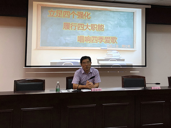 本次培训班专门邀请了区总工会党组书记、主席周社明同志来讲课。周主席从“立足四个强化、履行四大职能、唱响四季爱歌”三个方面为大家进行了精彩的讲课。周主席要求基层工会干部要强化自律,牢记担当作为意识;强化学习,不断提升能力本领;强化走访,努力发现培植亮点;强化创新,确保提升质能成效。