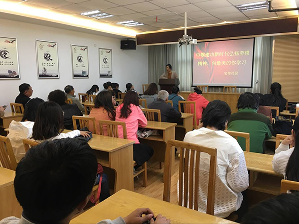 此次活动中,张虎兰和童伟日两位女同志,结合自身的经历,向大家讲述自己在工作中的感人故事。张阿姨腿部有残疾,但她身残志不残,她从不把自己当做残疾人,别人能做到的,她要比别人完成的更好,就是抱着这种不服输的精神,她在自己的岗位上发光发热,默默地奉献着自己的青春,成为大家心目中的最美的巾帼劳模。童阿姨不论退休前还是退休后,总是不停歇,哪里需要她,她就出现在哪里,她热心于社区公益事业,积极参加社区志愿者,在文明城市创建期间,不管是烈日炎炎的夏天,还是寒冷的冬天,只要需要随叫随到从无怨言。在社区的各个活动中,总能看到她的身影。童阿姨还带头组织了社区腰鼓队,关爱社区儿童等等,她的这种巾帼志愿者精神也是值得我们每个人学习。