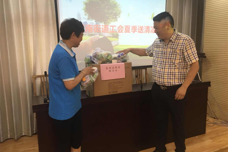 7月24日上午,城南街道组织开展夏季送清凉活动,街道人大工委主任、党工委副书记、工会主席殷恒林同志带领社区联合会工会主席走访慰问了金源物、公共自行车公司两家企业,为150名高温作业职工送去了夏季慰问品。